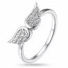 vinge zirkon ring i silver med blank yta och facettslipad vit zirkon.