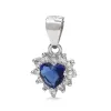 hjärta hängen i silver med blank yta og 1 facettslipade blå syntetiska safirer og facettslipad vit zirkon.