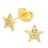 stjärna zirkon örhängen i förgylld mässing med blank yta och facettslipad vit zirkon.