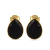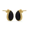 stora droppe örhängestift i förgyllt silver med blank yta och 2 facettslipade onyxer.