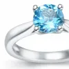 topas solitärring i 14 karat vitguld med blank yta och 1 facettslipade blå topaser