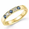 blå safir alliancring i 14 karat guld med blank yta och 2 briljantslipade diamanter i Wesselton/SI och 3 facettslipade safirer