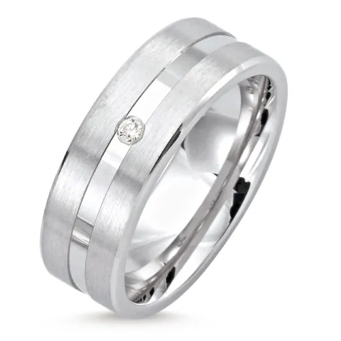 borstat ring i rhodinerat silver med blank och borstad yta och 1 facettslipade vita zirkoner.