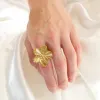 vattentät blommor justerbar ring i förgyllt stål med blank yta.