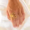 vattentät blommor justerbar ring i förgyllt stål med blank yta.