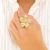 vattentät blommor ring i förgyllt stål med blank yta.