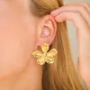 vattentät blommor örhängen i förgyllt stål med blank yta.
