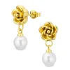 vattentät blommor örhängen i förgyllt stål med blank yta 2 vita pärlor.