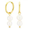 vattentät pärla creol i förgyllt stål med blank yta 4 vita syntetiska pärlor.