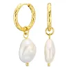 vattentät pärla creol i förgyllt stål med blank yta 2 vita syntetiska pärlor.