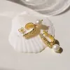 Kollektionsprov med fel pärla halvcreol i förgylld mässing med blank yta 2 vita syntetiska pärlor.