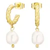 vattentät pärla halvcreol i förgyllt stål med blank yta 2 vita syntetiska pärlor.