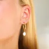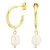 vattentät pärla halvcreol i förgyllt stål med blank yta 2 vita syntetiska pärlor.