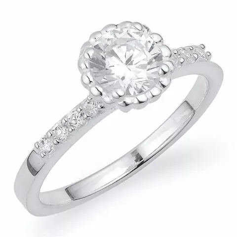 zirkon fingerringar i silver med blank yta och 9 facettslipade vita zirkoner.
